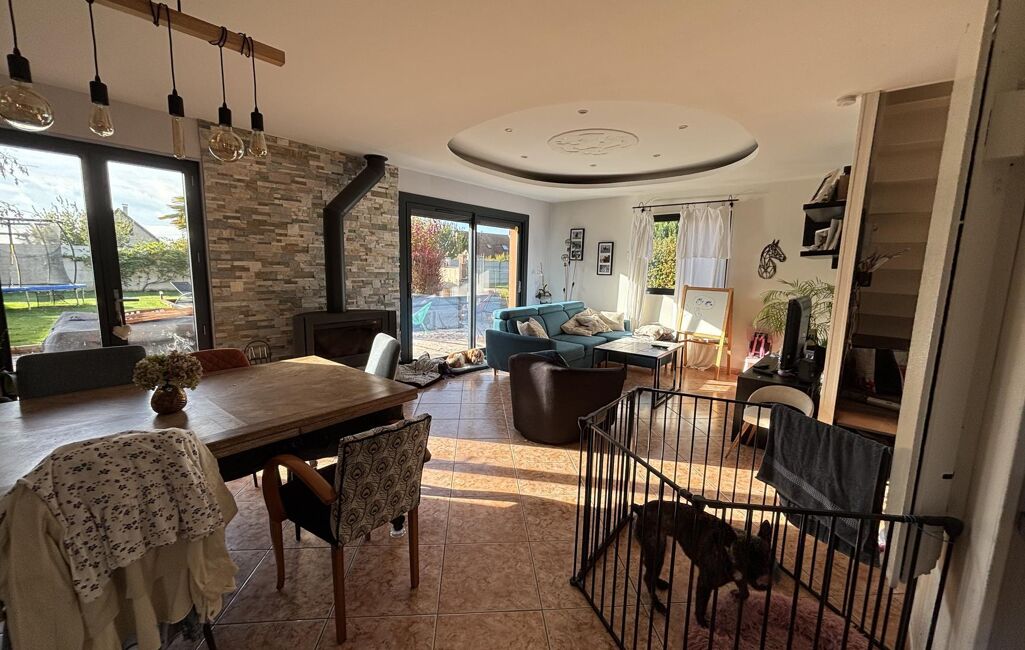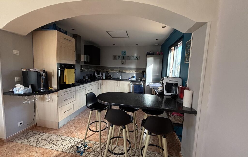 Maison sur un terrain d'environ 1501m² comprenant: une entrée avec placard, cuisine aménagée ouverte sur le séjour/salon avec poêle à bois, une chambre et un wc.
