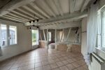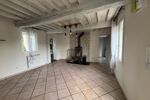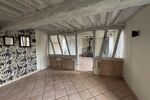 Maison normande sur un terrain d'environ 1100m² comprenant: entrée avec placard, cuisine aménagée, arrière-cuisine, séjour/salon avec poêle à bois, deux chambres dont une avec mézzannine au-dessus, salle de douche, buanderie et wc.
