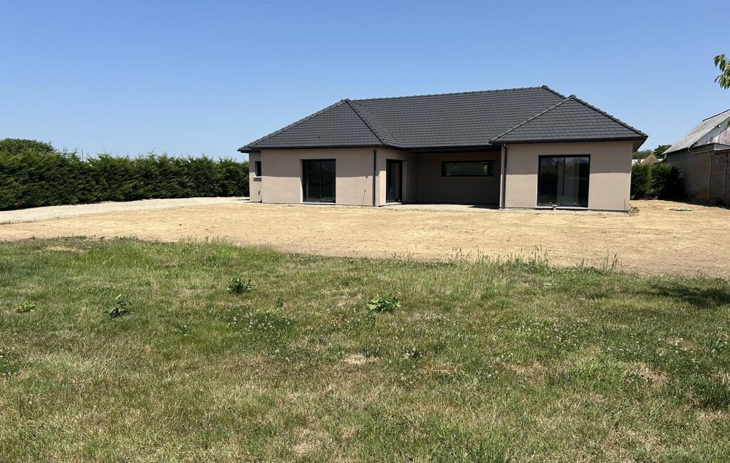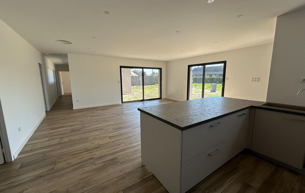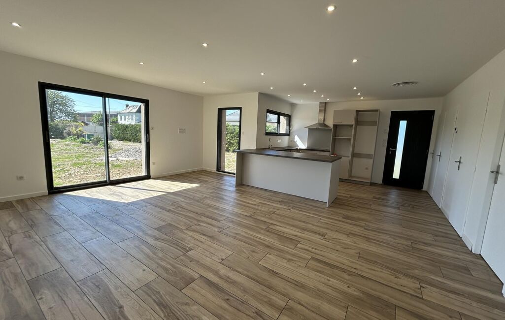 Maison de plain-pied sur un terrain d'enviorn 1542 m² comprenant: une entrée, cuisine aménagée ouverte sur le séjour/salon, quatre chambres dont une suite parentale, une salle de douche et wc. Céllier attenant à la maison.
