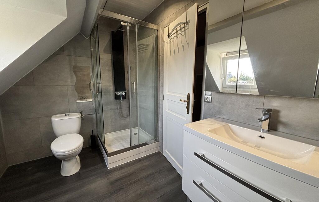 Au 1er: palier avec placard, deux chambres et salle de bains/douche/wc.